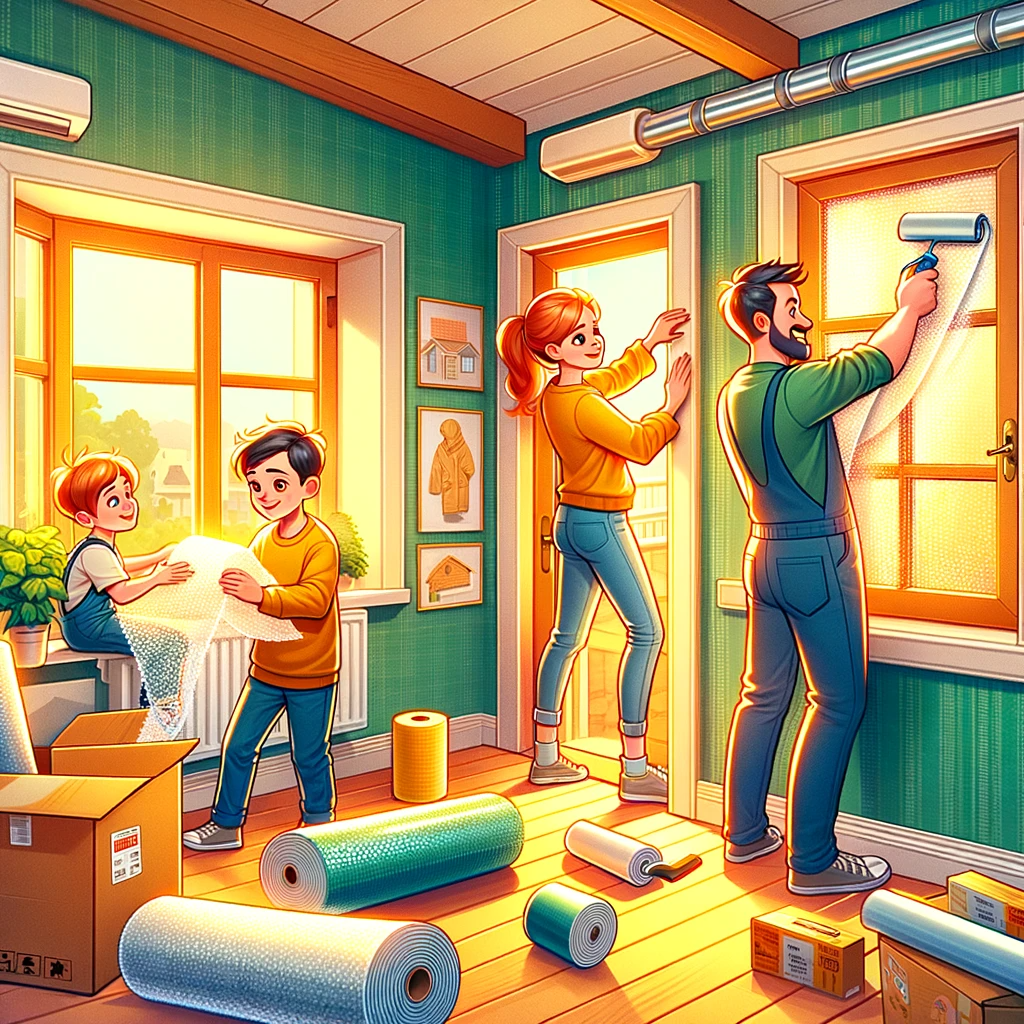 뽁뽁이(에어캡), 문풍지, 단열벽지 등을 활용하여 창문이나 문의 틈을 막아 찬공기의 유입을 방지하여 열손실을 줄입니다.