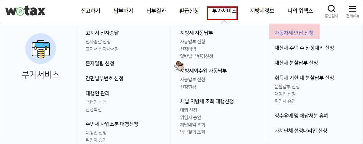 연납신청은 위택스 홈페이지나 모바일앱(스마트 위택스) 통해서 가능하며, 지자체 자동차세 담당부서에 방문 또는 전화로도 신청할 수 있습니다.