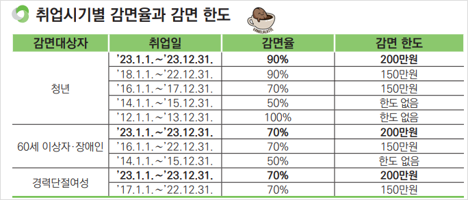 감면율과 한도는 2023년 12월 31일까지 취업하는 경우에 해당됩니다.