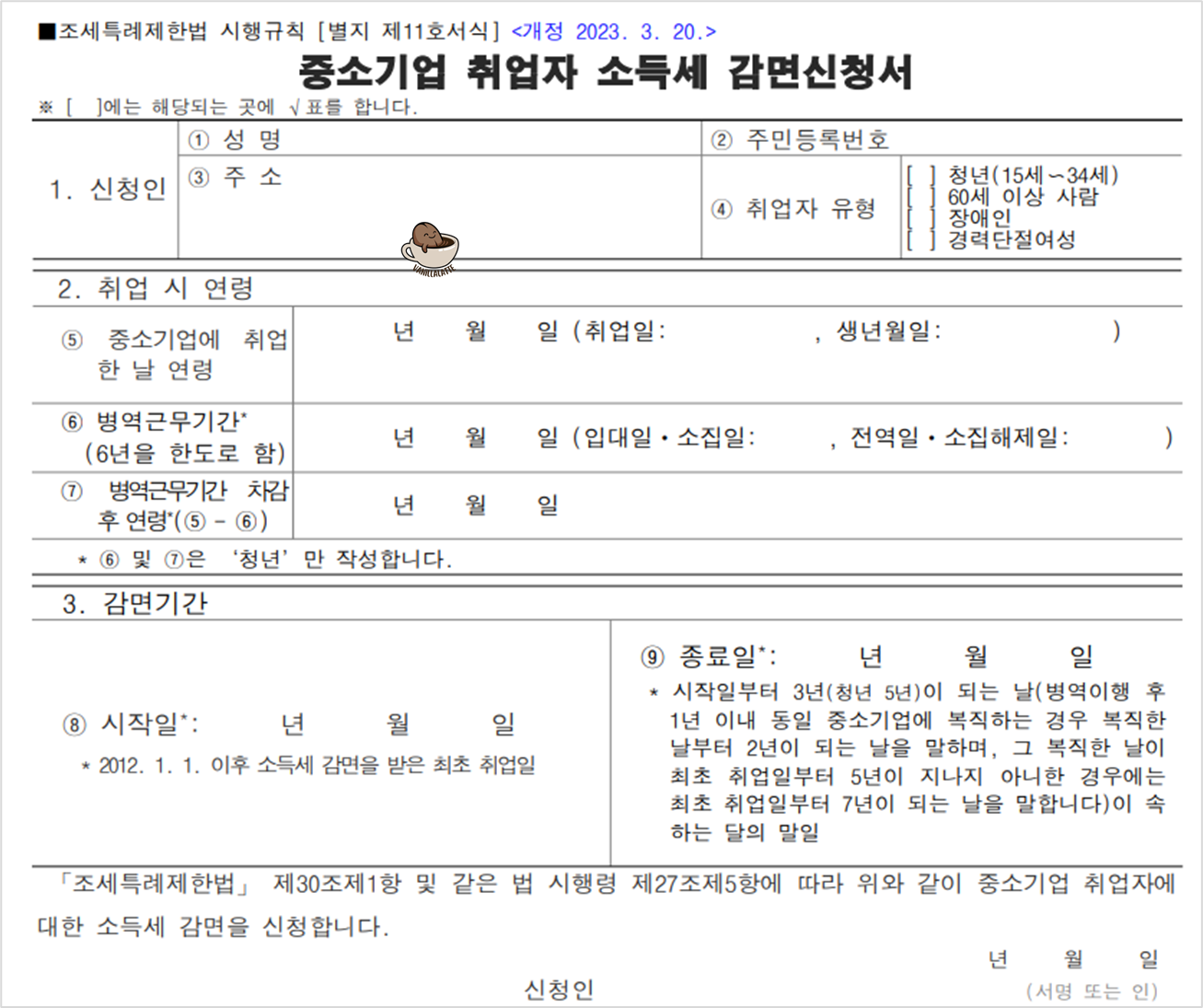 중소기업 취업자 소득세 감면 대상자 신청서 제출방법