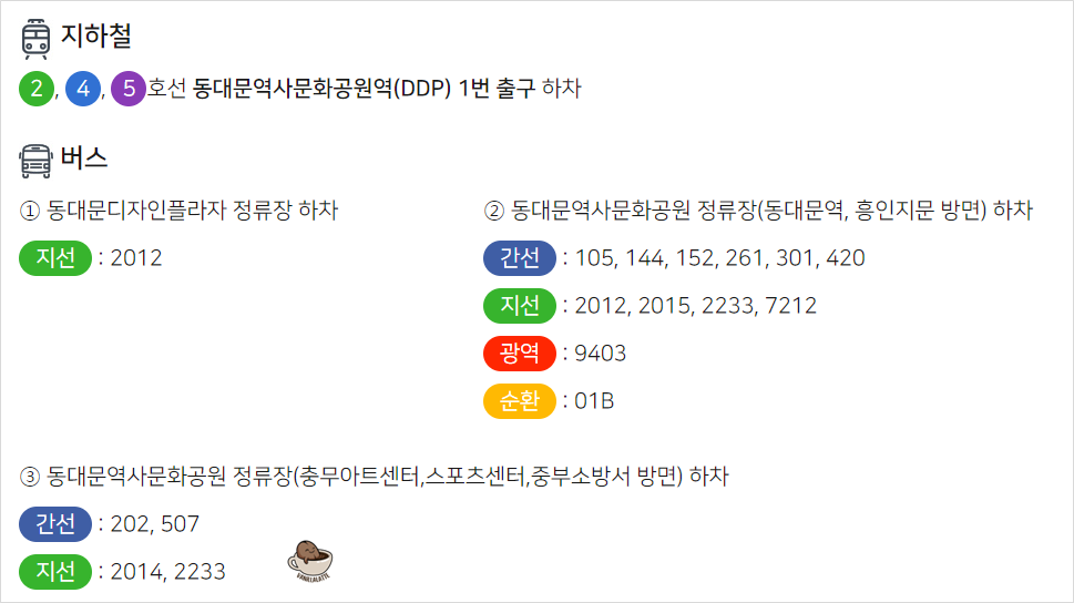 - 주소 : 서울특별시 중구 을지로 281,DDP(동대문 디자인 플라자) 아트홀1관 DDP