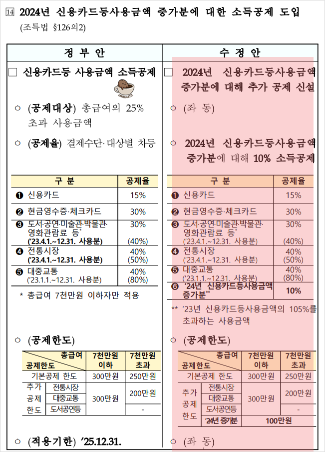 - 개정: 연간 사용액이 전년 대비 105% 초과 시, 초과분의 10% 추가 공제 (100만원 한도)
