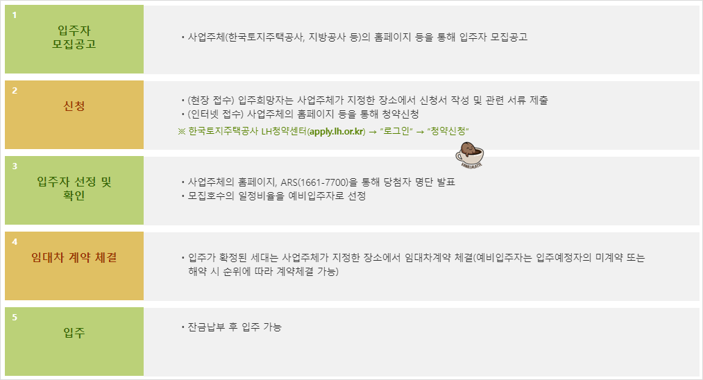 - 입주자 모집공고 : 홈페이지 등을 통해 입주자 모집을 공고