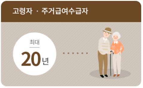 - 고려자 : 만65세 이상 무주택세대구성원이어야하며, 소득 및 자산 기준이 적용됩니다.