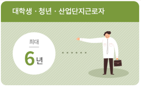 - 대학생 : 대학에 재학 중 또는 입,복학 예정인 혼인중이 아닌 무주택자가 해당됩니다. 또한 본인 및 부모의 소득 및 자산기준을 충족해야합니다.